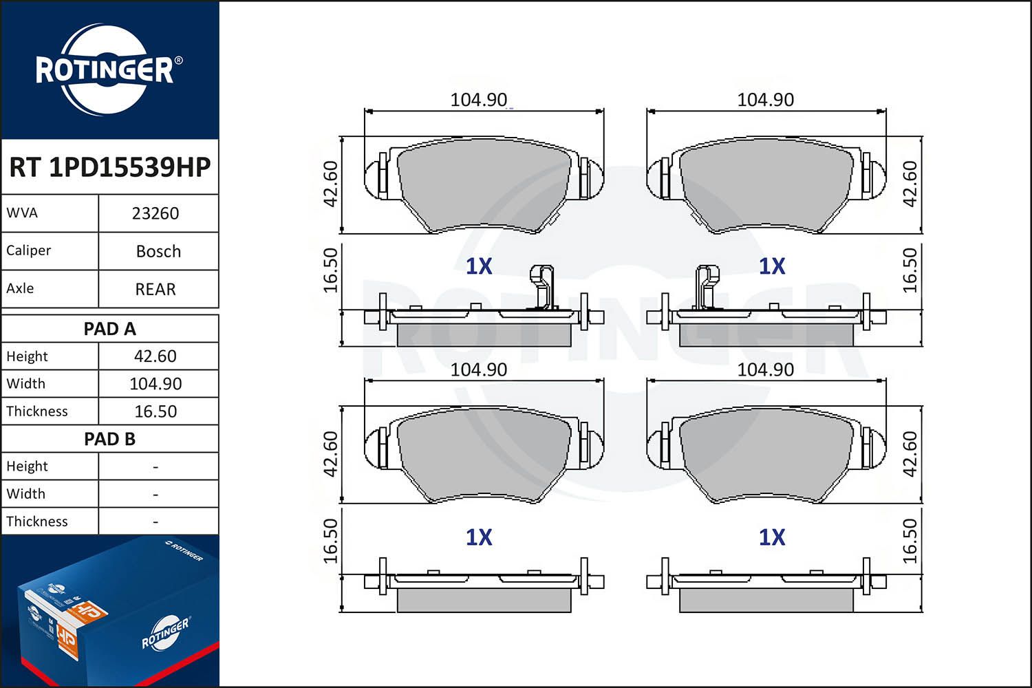 pastiglie dei freni RT 1PD15539HP pastiglie dei freni RT 1PD15539HP