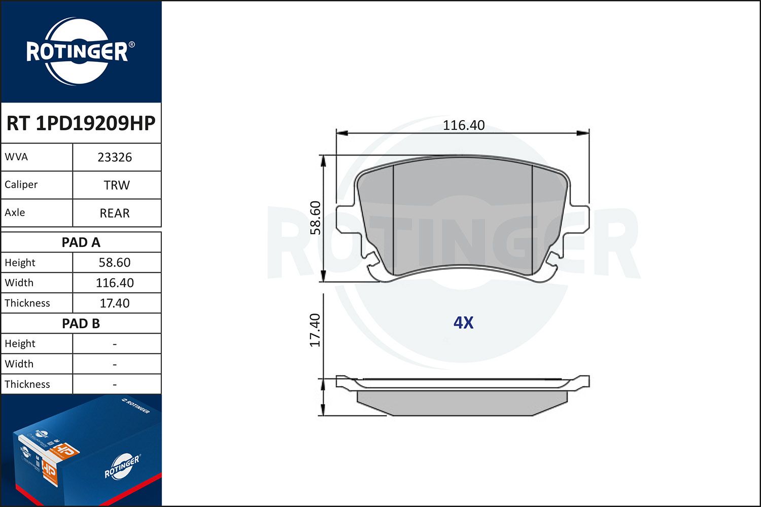pastiglie dei freni RT 1PD19209HP pastiglie dei freni RT 1PD19209HP