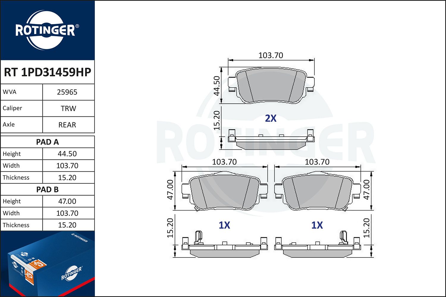 pastiglie dei freni RT 1PD31459HP pastiglie dei freni RT 1PD31459HP
