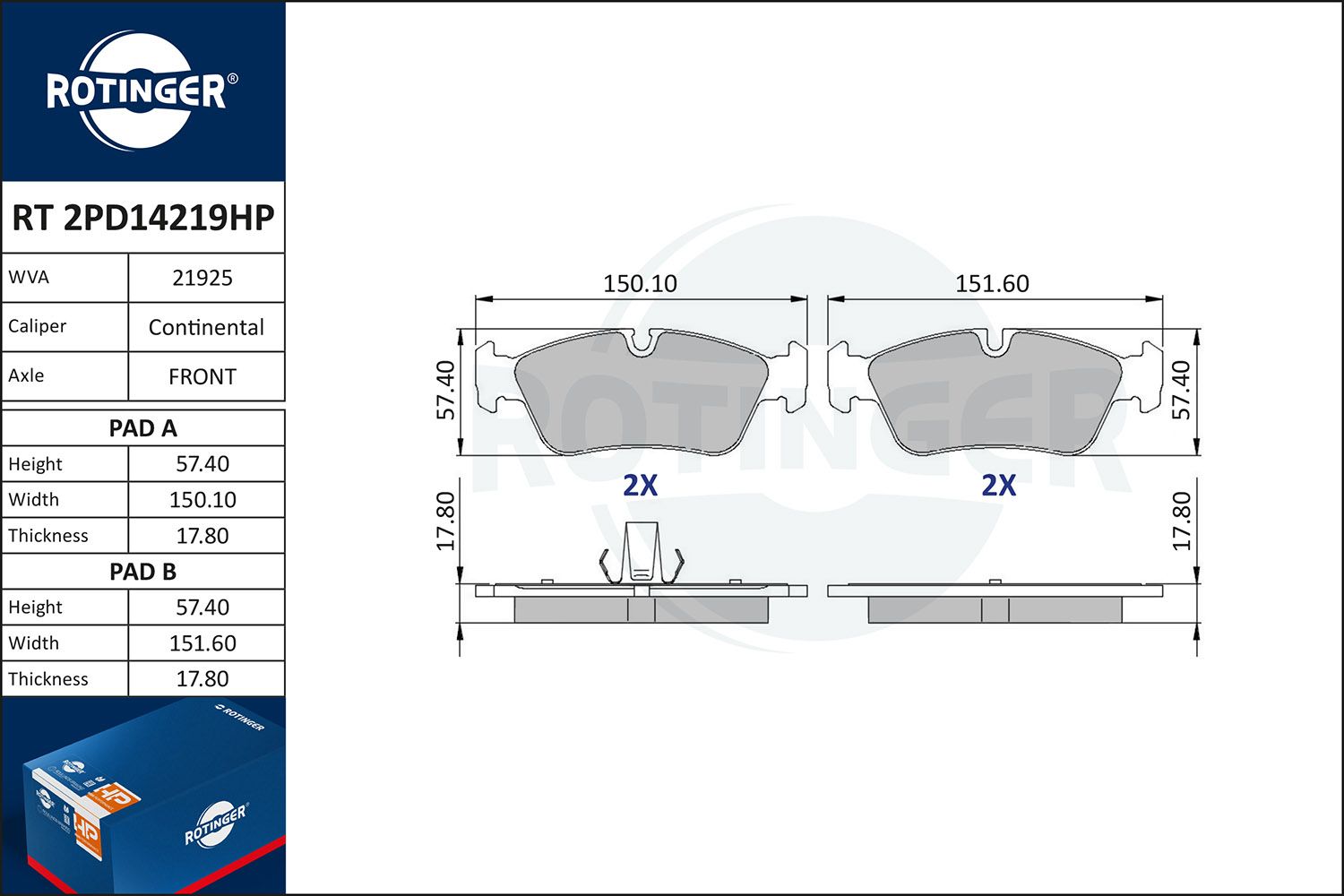 pastiglie dei freni RT 2PD14219HP pastiglie dei freni RT 2PD14219HP