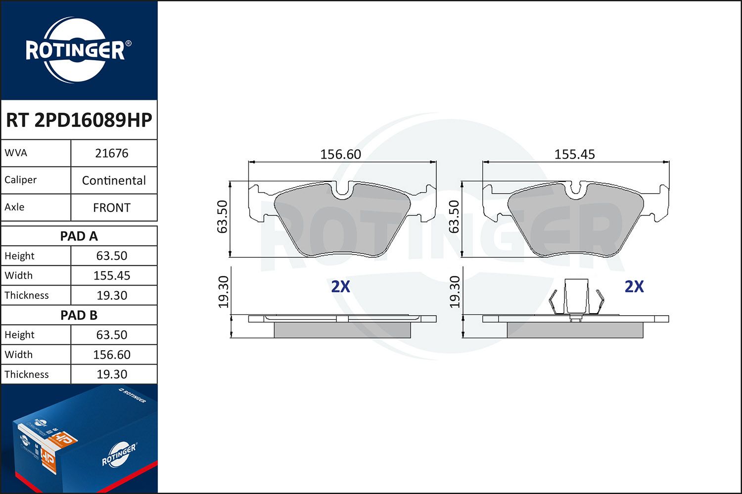 pastiglie dei freni RT 2PD16089HP pastiglie dei freni RT 2PD16089HP