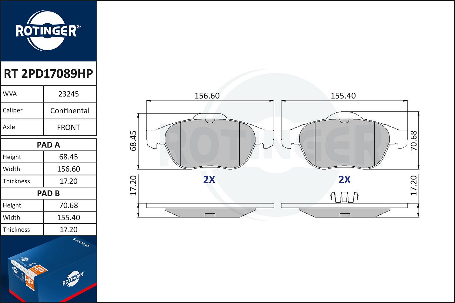 pastiglie dei freni RT 2PD17089HP pastiglie dei freni RT 2PD17089HP
