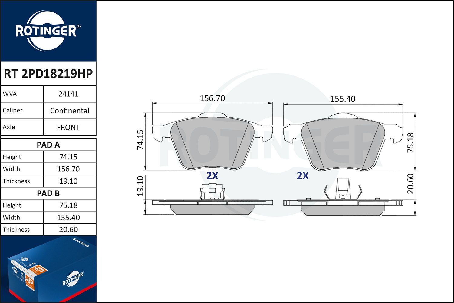 pastiglie dei freni RT 2PD18219HP pastiglie dei freni RT 2PD18219HP