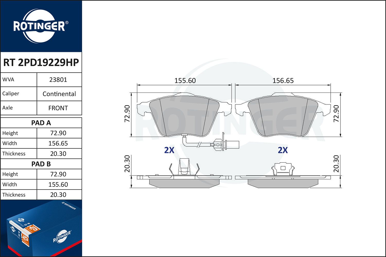pastiglie dei freni RT 2PD19229HP pastiglie dei freni RT 2PD19229HP