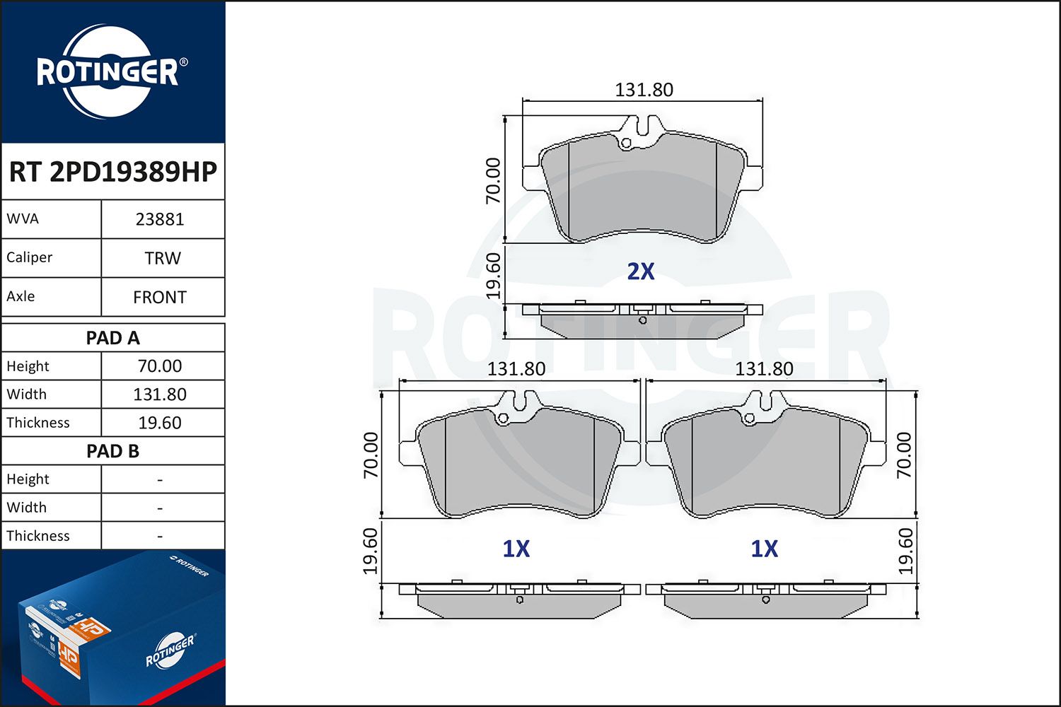 pastiglie dei freni RT 2PD19389HP pastiglie dei freni RT 2PD19389HP