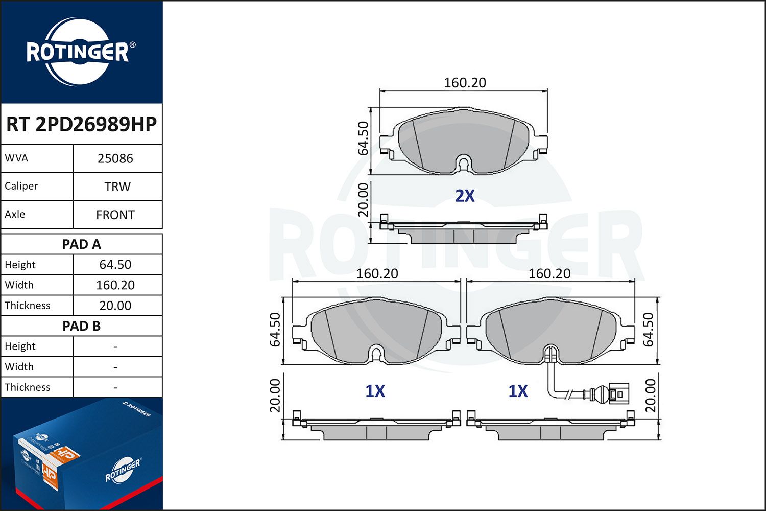 pastiglie dei freni RT 2PD26989HP pastiglie dei freni RT 2PD26989HP